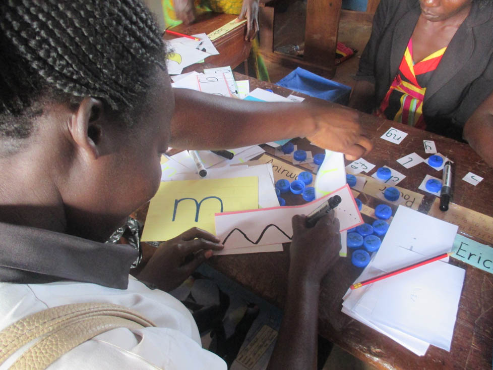 A nursery teacher practising letter formation skills led by Teach Caroline.